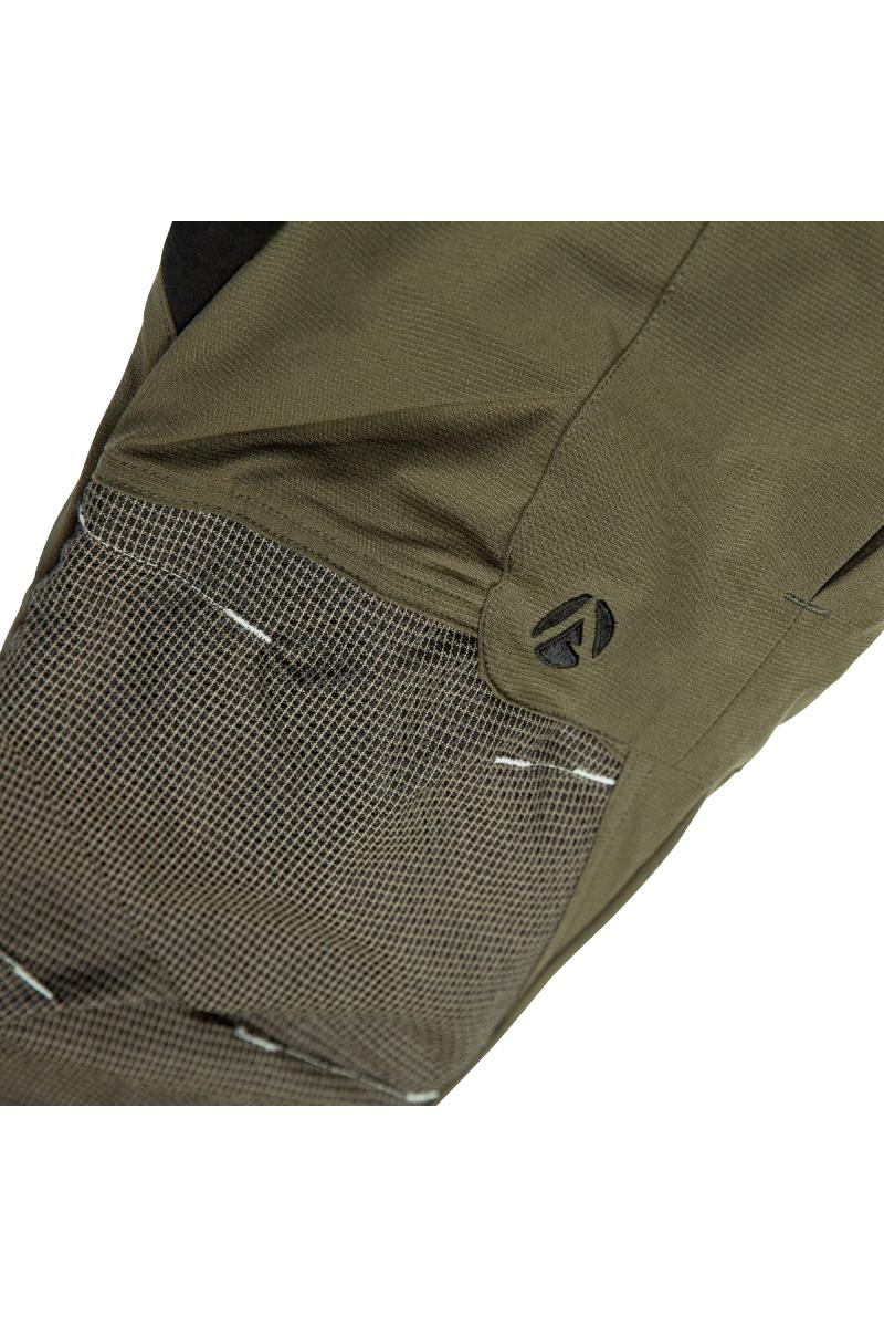 Buksene har et svært slitesterkt og motstandsdyktig panel på fremsiden og rundt anklene.