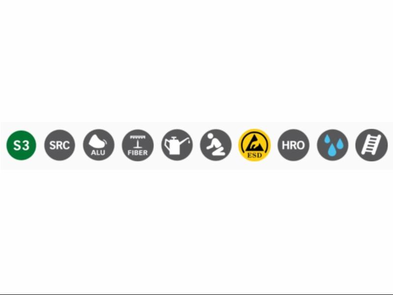 Ekstra slitesterk, sklihemmende, fleksibel og støtdempende yttersåle av PU/nitrilgummi som tåler varme opptil 300 °C (HRO). Med stabiliserende gelenk som motvirker vridning og fordeler trykket til hele sålen