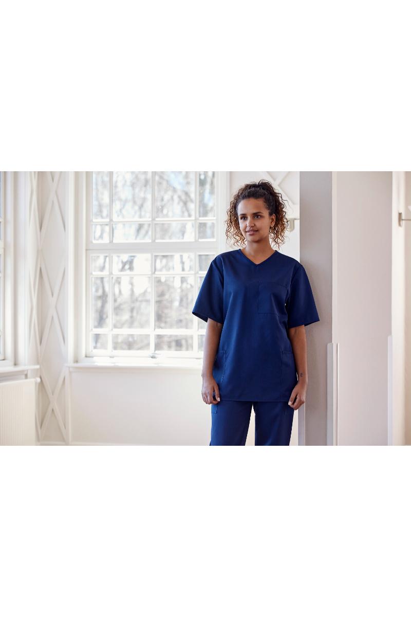 Mer dekkende unisex V-hals, som enkelt kan tas på på grunn av kutt i nakken