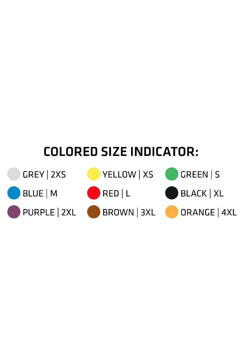 Størrelsesindikator med farget etikett