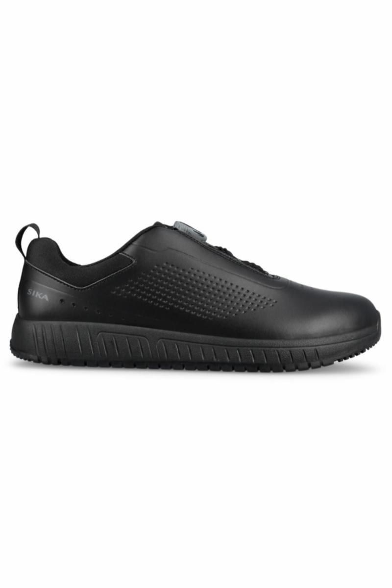 | Sika Energy BOA microfiber Sneaker-lignende arbeidssko med BOA® Fit System – perfekt til servitører og annet kjøkkenpersonale. Med det originale BOA® Fit System som lukking kan arbeidsskoen tas på og av raskt, samtidig som man får perfekt passform hver gang. Den glatte overdelen av mikrofiber med elegante detaljer gjør skoen ekstra motstandsdyktig mot smuss, samtidig som den har avvisende effekt mot vann og andre væsker. Yttersålen består av den innovative teknologien SIKA HexaGrip. Sålen er laget av slitesterk gummi, og sålemønsteret består av mange hexagoner, som bidrar til 360° sklisikkerhet og enkelt leder bort væske fra sålen, slik at skoen får bedre grep på underlaget innendørs. Myk mellomsåle av EVA-skum gjør skoen fleksibel, lett og ekstra støtdempende. Luftbobler i både mellom- og yttersåle, SIKA BubbleTech, gir svært god støtdemping, sender energien fra hvert skritt tilbake og gir nok energi til hele arbeidsdagen. Arbeidsskoen er PVC-fri og ESD-godkjent. Spesielle egenskaper PVC-fri ESD-godkjent Bransje Fritid Service og rengjøring Sykehus, helse og omsorg Hotell, restaurant og kantine Kjønn Unisex |