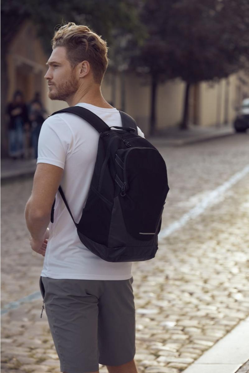 Funksjonell backpack i velutviklet design. Tilpasset de fleste anledninger. To store rom separert av en sleeve som beskytter laptop. Meshlomme for nøkkeloppbevaring. Lomme i toppen av sekken for lett tilgang og en skjult lomme bak til verdisaker. En solid stropp bak gir mulighet for å feste sekken på en trolley. Reflekterende detaljer gjør sekken synlig i mørket.