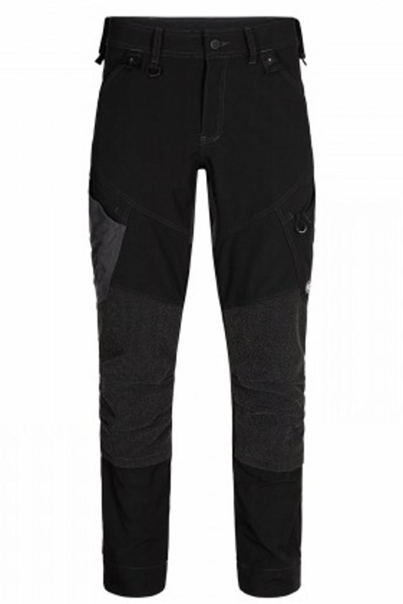 Funksjonelle håndverkerbukser med en moderne passform og mange praktiske detaljer. Optimal passform med bl.a. ergonomisk formet kneparti. Stoffet er laget i en behagelig 4 -veis stretch-kvalitet der slitestyrken og pusteevnen er på topp. Metervaren absorberer svette lett og tørker raskt opp, slik at komforten blir ekstra høy. Knapper for enkel montering av hengelommer. D-ring foran for festing av f.eks. ID-kort. To romslige skrålommer foran. To baklommer. To lårlommer som lukkes med glidelås. På venstre side har lårlommen en ekstra telefonlomme. På høyre side har lårlommen en påsydd tommestokklomme med ekstra inndelinger Kneforsterkning/knelomme med borrelåslukking nedenfor og med to innstillingsmuligheter for høyderegulering av kneputen. Kneforsterkningen er laget i et ekstra slitesterkt kevlarmateriale. Forsterkning nederst bakpå buksebeina for ekstra slitestyrke. Buksene har en ekstra bred oppbrett som er beregnet for å kunne øke lengden på buksene hvis det er behov for ekstra benlengde. En enkelt søm sprettes opp, så får buksen ekstra benlengde - uten å måtte sys på nytt.