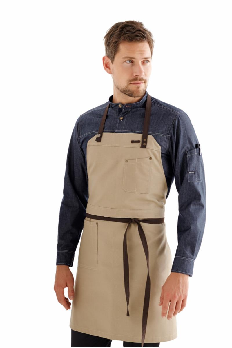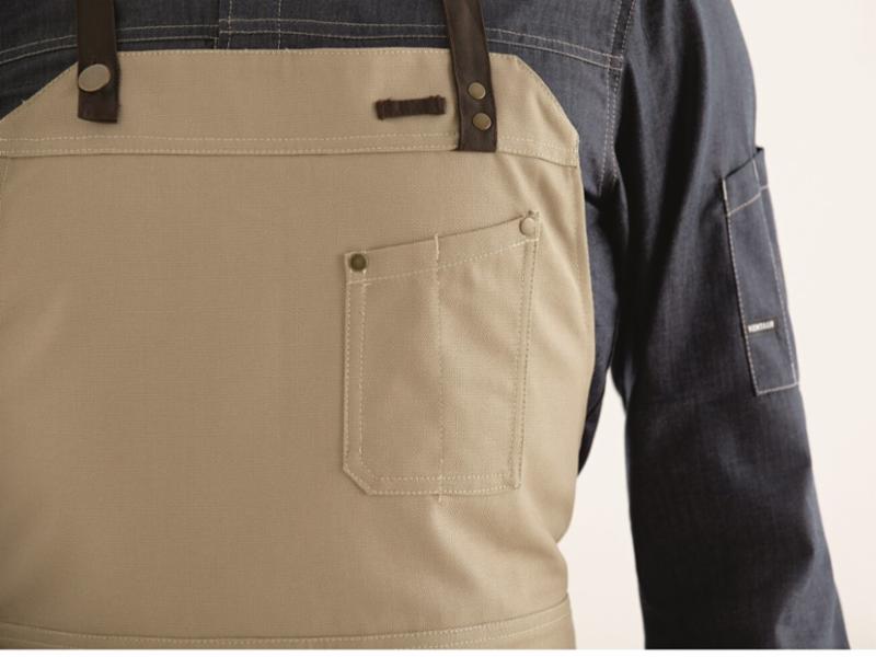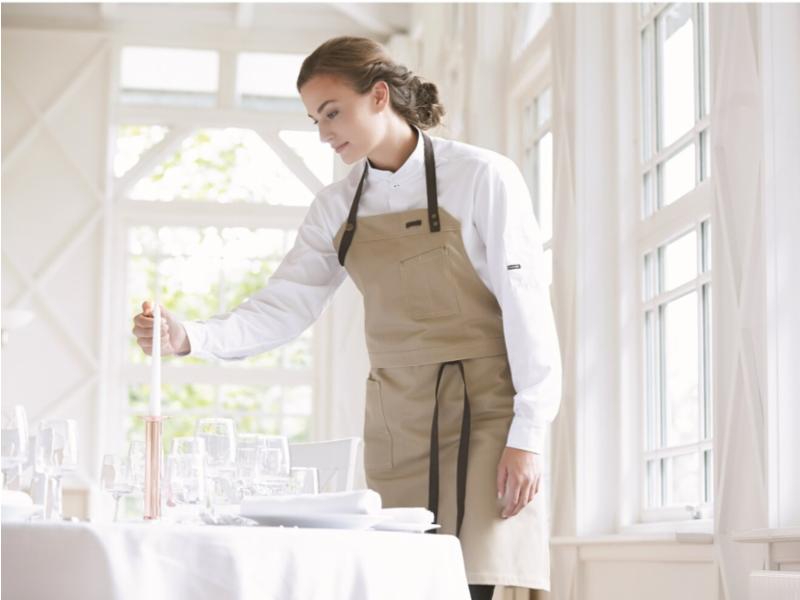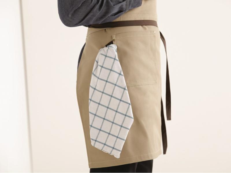Smekken kan brettes over slik at den kan brukes som servitørforkle
