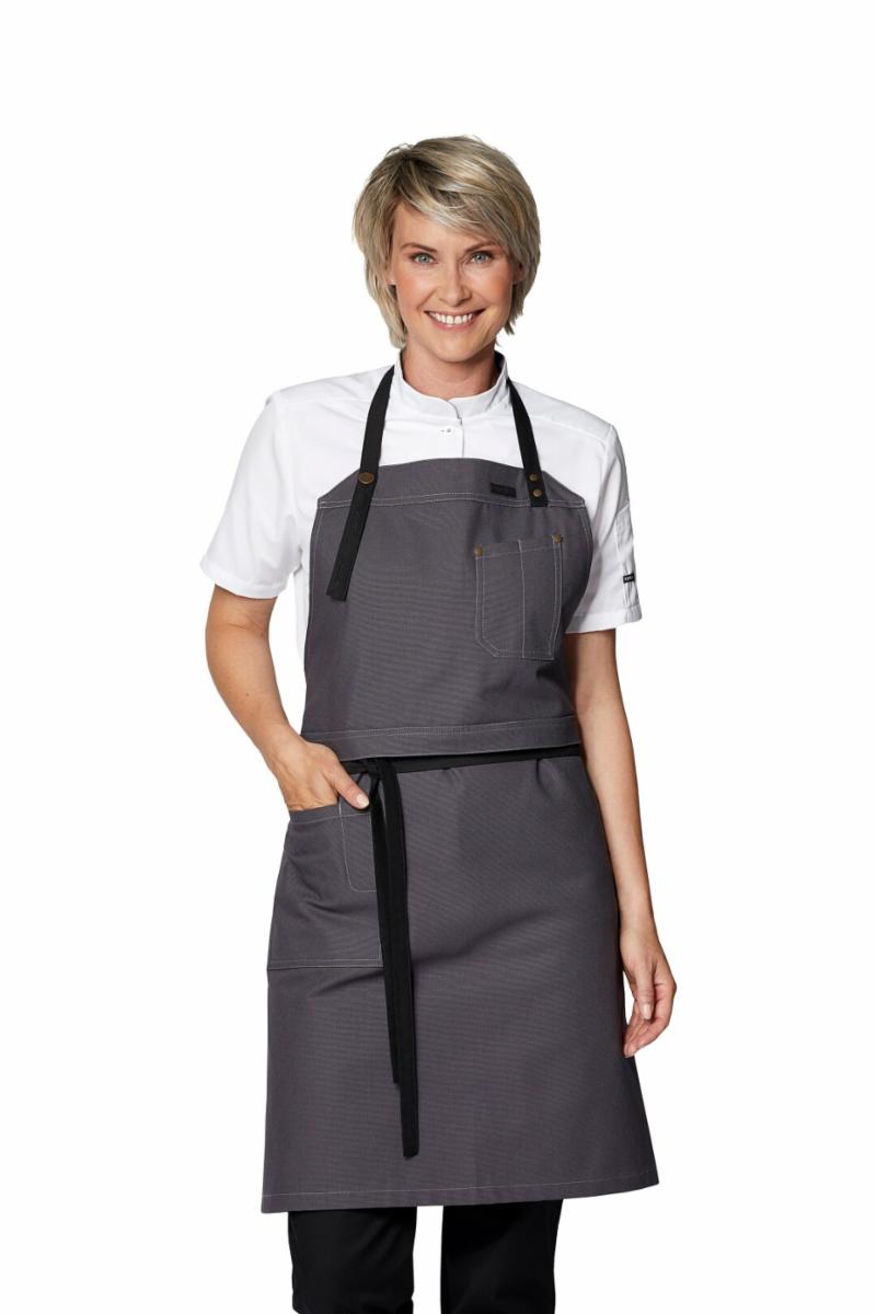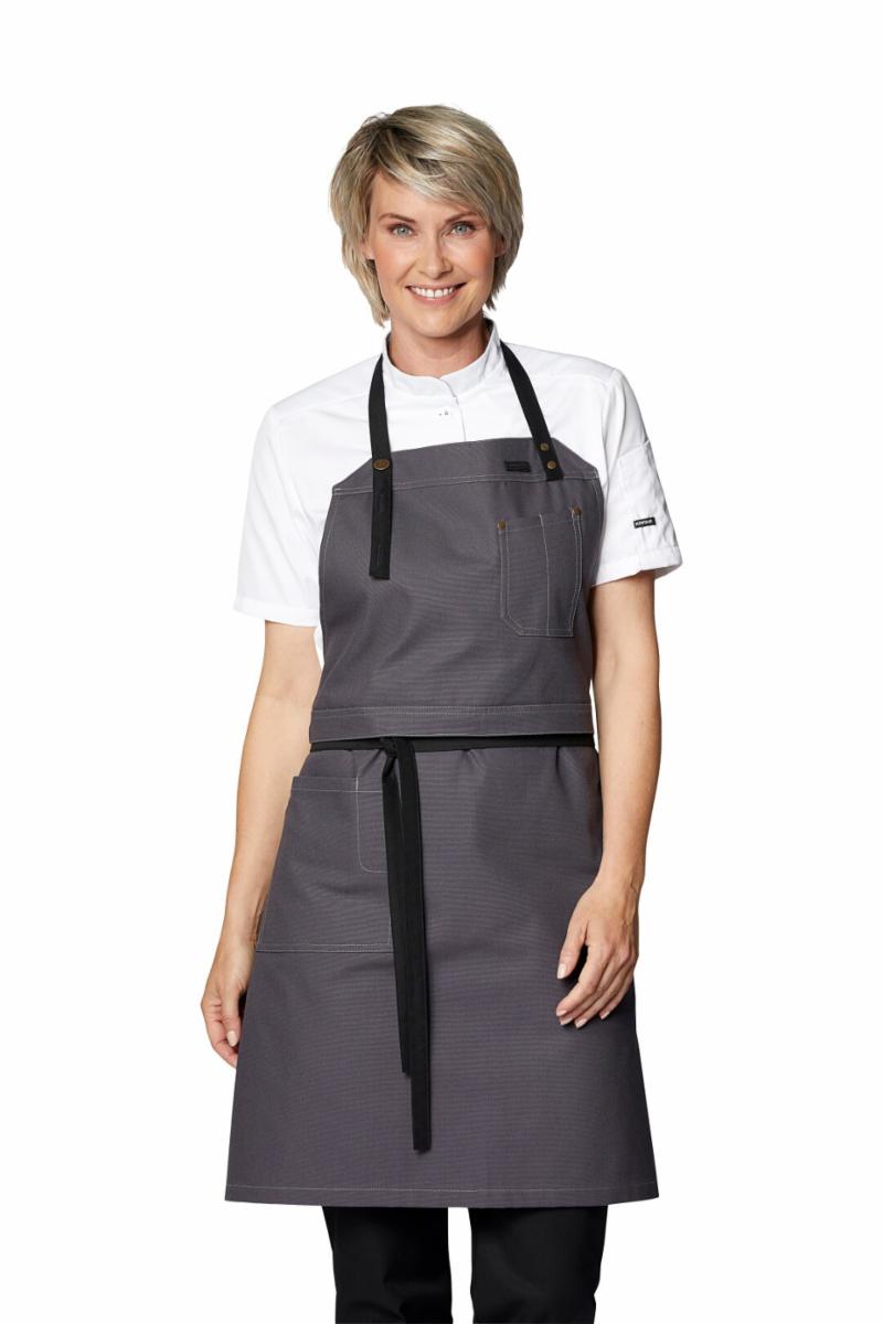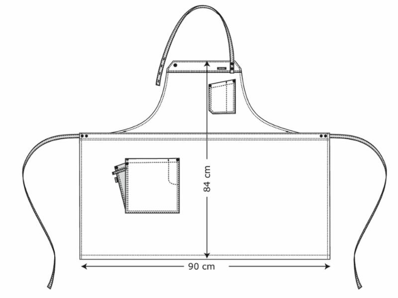 Smekken kan brettes over slik at den kan brukes som servitørforkle