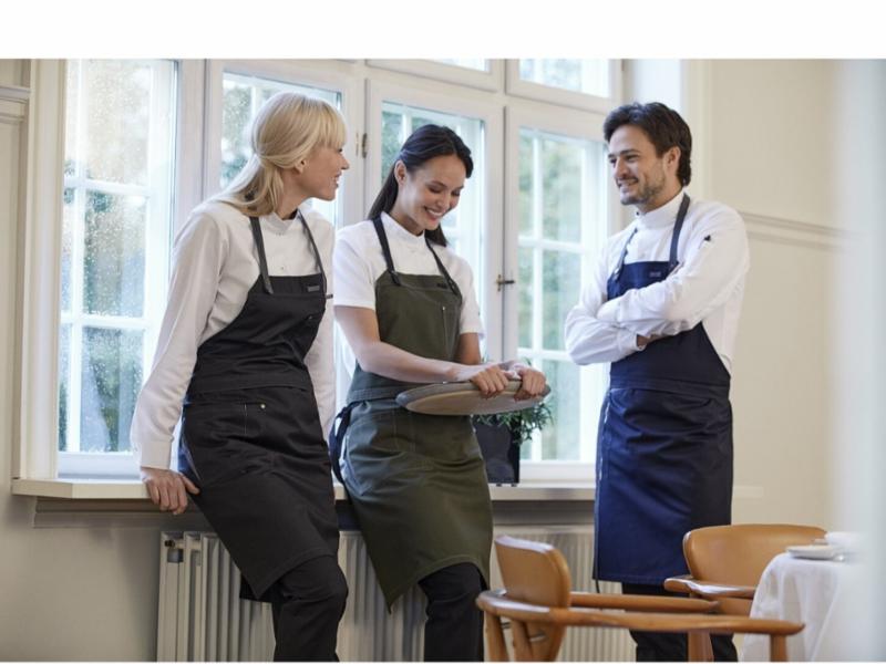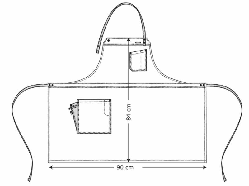 Smekken kan brettes over slik at den kan brukes som servitørforkle