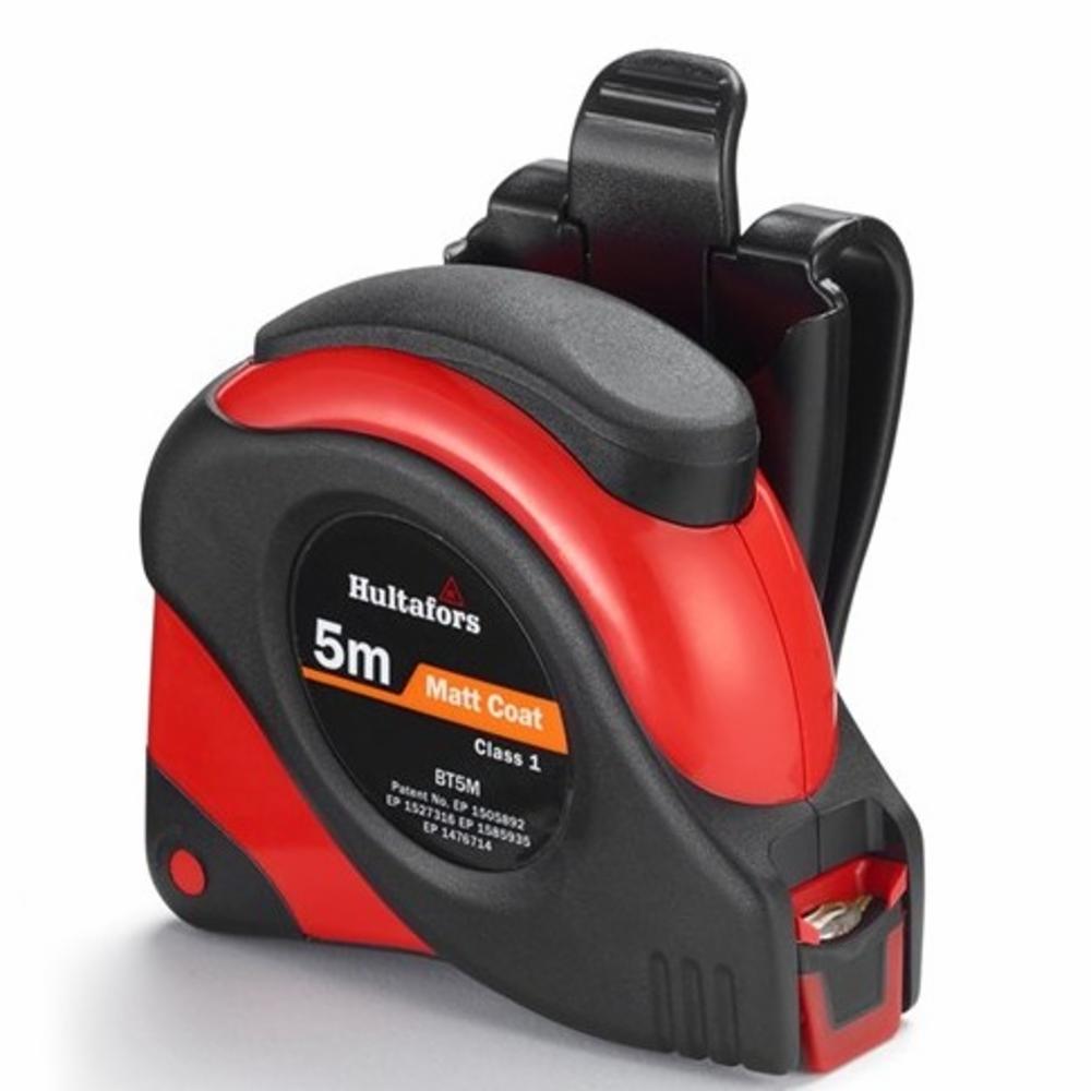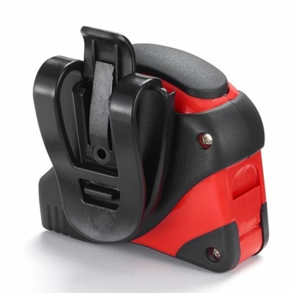 Unik belteholder med rask funksjon som gjør at målebåndet kan frigjøres med en hånd.