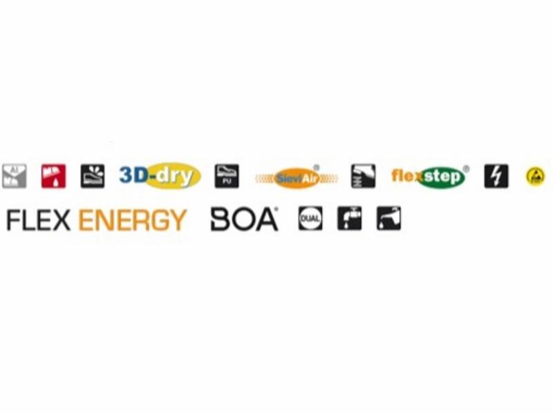 Lav sko i sikkerhetsklasse S3 med SieviAir®-såle og Boa®-mekanisme, spikertramp i stål og tåhette i aluminium. Verdens mest avanserte hældemping, FlexEnergy, binder energien som oppstår ved bevegelse og mer enn 55 % tilbakeføres til hvert skritt. Fotsvette fjernes effektivt gjennom luftekanalene i sidene på SieviAir®-sålen.