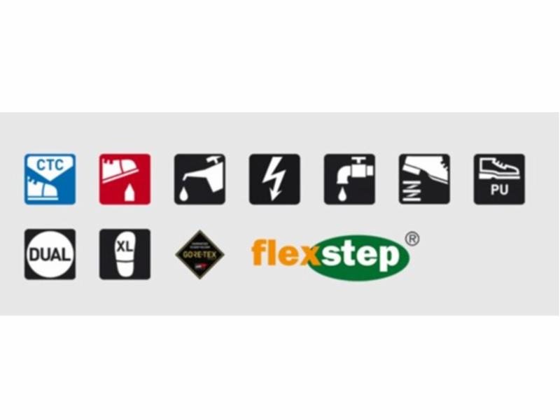 Det mikroporøse FlexStep®-sålematerialet utviklet av Sievi bevarer sin utmerkede støtdempende egenskap og fleksibilitet også i kulde, i tillegg til å gi solid grep på glatt underlag. Den fleksible FlexStep®-sålens konstruksjon forebygger belastninger og støt mot fot, kne og rygg. Alle Sievi’s fottøy har FlexStep®-yttersåle.