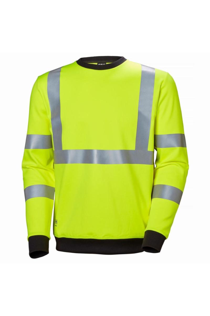 HiVis collegegenser med normal passform. Myk og komfortabel kvalitet med børstet innside. Ribbestrikk med elastan i hals, ermer og linning. Forsterkningsbånd i nakke. 50 mm påsveiset 4-veis stretch refleks på mage, rygg, skuldre og ermer. Hempe i nakke.