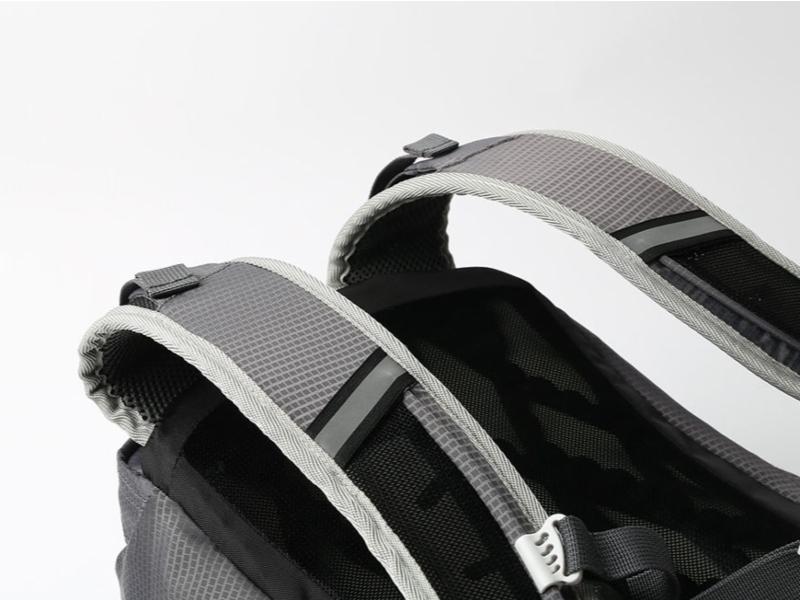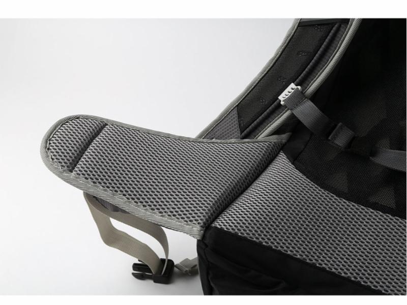Nettingdekket ryggplate i skum gir utmerket luftgjennomstrømning og økt bærekomfort.