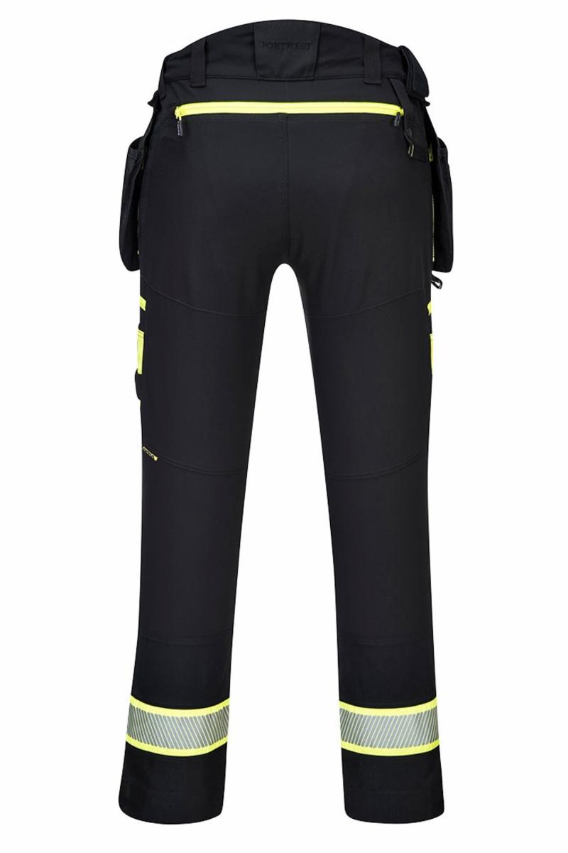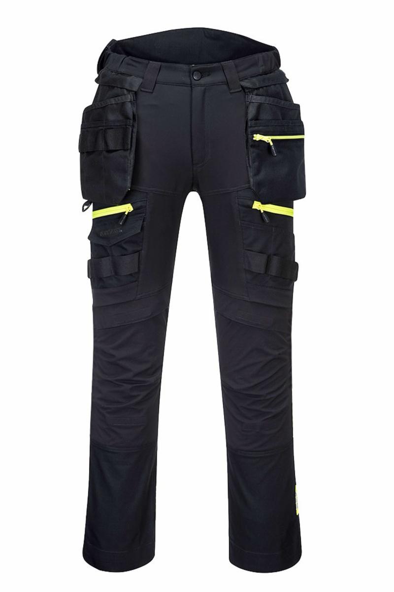 Ergonomisk formet håndverksbukse i full stretch for ultimat komfort. Forhøyet bak i midjen, forbøyde knær med justerbare kneputelommer, store håndverkslommer og stor praktisk lårlomme for god oppbevaring. Triple sømmer for maksimal holdbarhet.