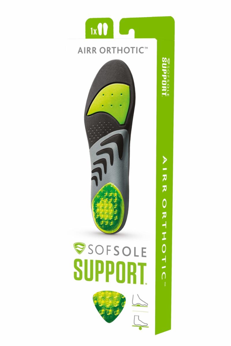 Airr Orthotic fra Sof Sole er godt egnet for deg som trenger støtte til foten eller fotbuen.Sålen er laget for aktiviteter der man kan få harde støt og egner seg godt til alle typer bruk. Med gode støtdempende egenskaper kan du være sikker på komfortable føtter gjennom hele dagen. Med stabiliserende nylonplate forsterker sålen fotjusteringen og avlaster foten. Den dype hælkopp reduserer innvendig glidning og fyller opp tomrom rundt hælen. Sålene er perfekte for deg med aktiv livsstil.