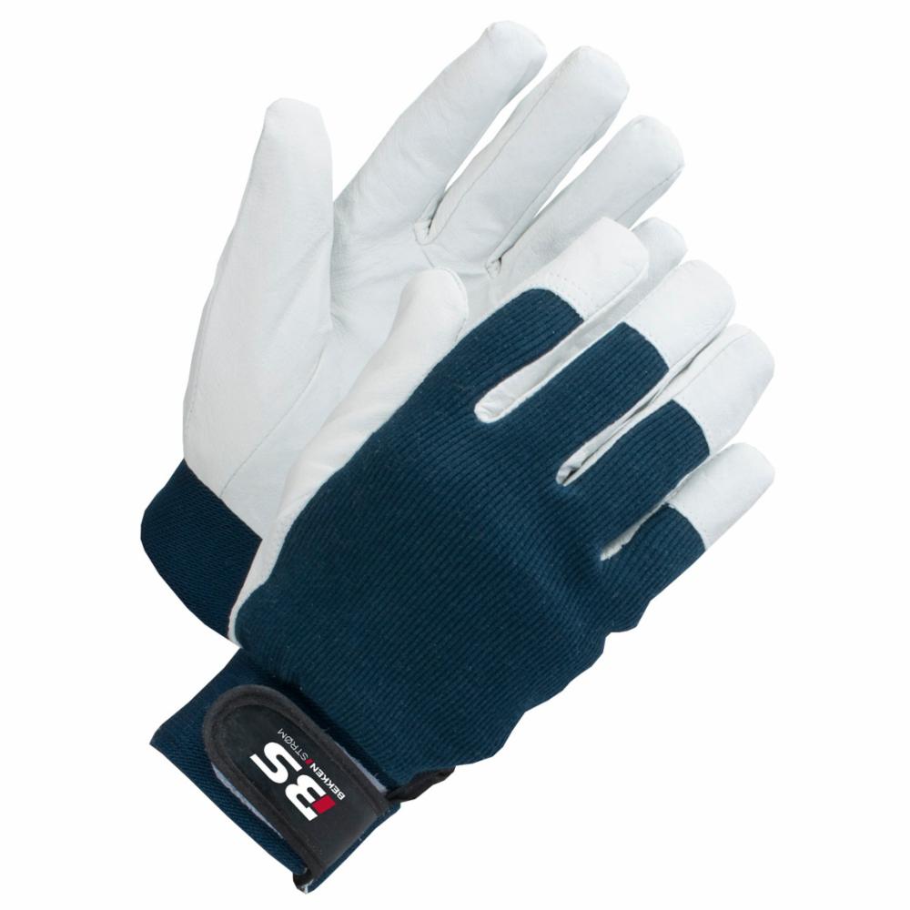 Jerseyfôret svineskinn. Med elastikk i håndbak og borrelåslukking rundt håndledd.