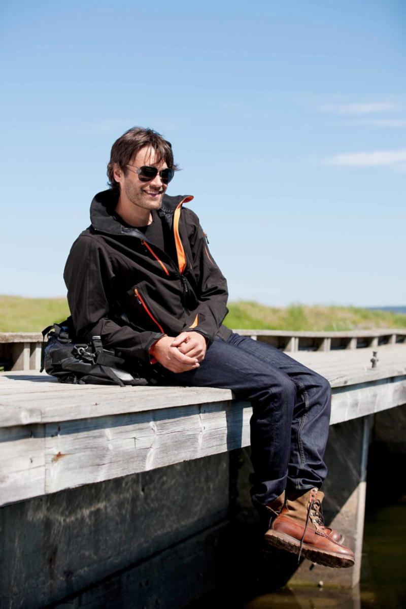 En høyteknisk 3-lags skalljakke som tåler det meste. Gå i fjellet, stå på ski, dra til sjøs. Jakken er laget i 3-lags sveiset vindtett, vanntett og 2-veis elastisk stoff med teipede sømmer og vannavvisende hovedglidelås, samt YKK vannavvisende glidelåser på samtlige utvendige lommer (5 stk.). 2-Veis YKK vannavvisende glidelåser under ermene gir deg mulighet for mekanisk lufting ved høy aktivitet.