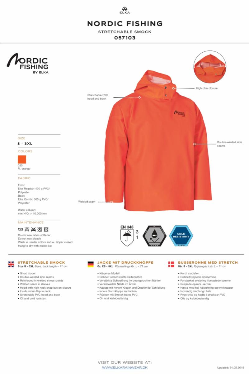 NORDISK FISKE BUSSERONNE MED STRETCH HI-VIS. ORANGE
