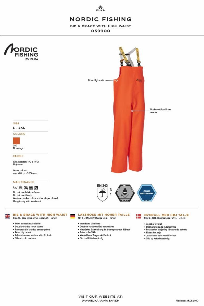 NORDISK FISKE OVERALL MED HØYT MIDJE HI-VIS. ORANGE