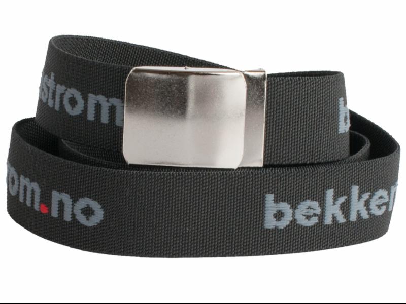 Elastisk belte med metallspenne med Bekken & Strøm-logo.