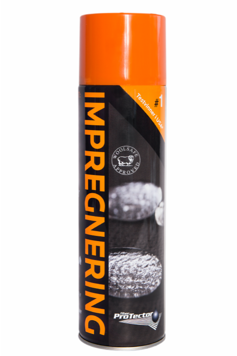 Det er lett å impregnere! Spray med en jevn bevegelse ca. 20 cm unna stoffet. Vi anbefaler å gjøre dette i et godt ventilert område, det ideelle er å gjøre det utendørs. Vent minst 60 minutter før du tar i bruk det impregnerte produktet. Hvis du ved en feil sprøyter for mye på et område – ikke stress; dette kan enkelt fjernes med en klut.
