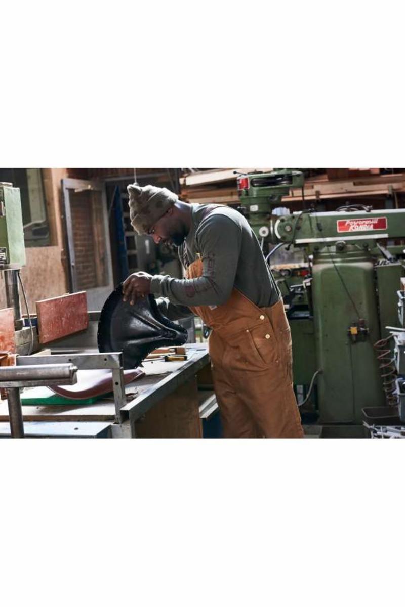 Denne kjeledressene for menn ble designet med tilbakemeldinger fra vårt Carhartt-team. Hver detalj, fra sparkepanelet foran til bak på bunnkantene til den ekstra strekk rundt midjen, var tilbakemeldinger fra de hardtarbeidende menneskene som bruker utstyret vårt dag ut og dag inn. Smekkene er pålitelige og holdbare og er laget med vår tunge bomullsand. De har elastiske seler, dobbelt lag ved knærne og rikelig med lommer. Romslig for en komfortabel passform, kuttet for en rekke bevegelser. Det kraftige materialet blir mykere og mere fleksibelt ved bruk, men vil føles litt stivt i starten.