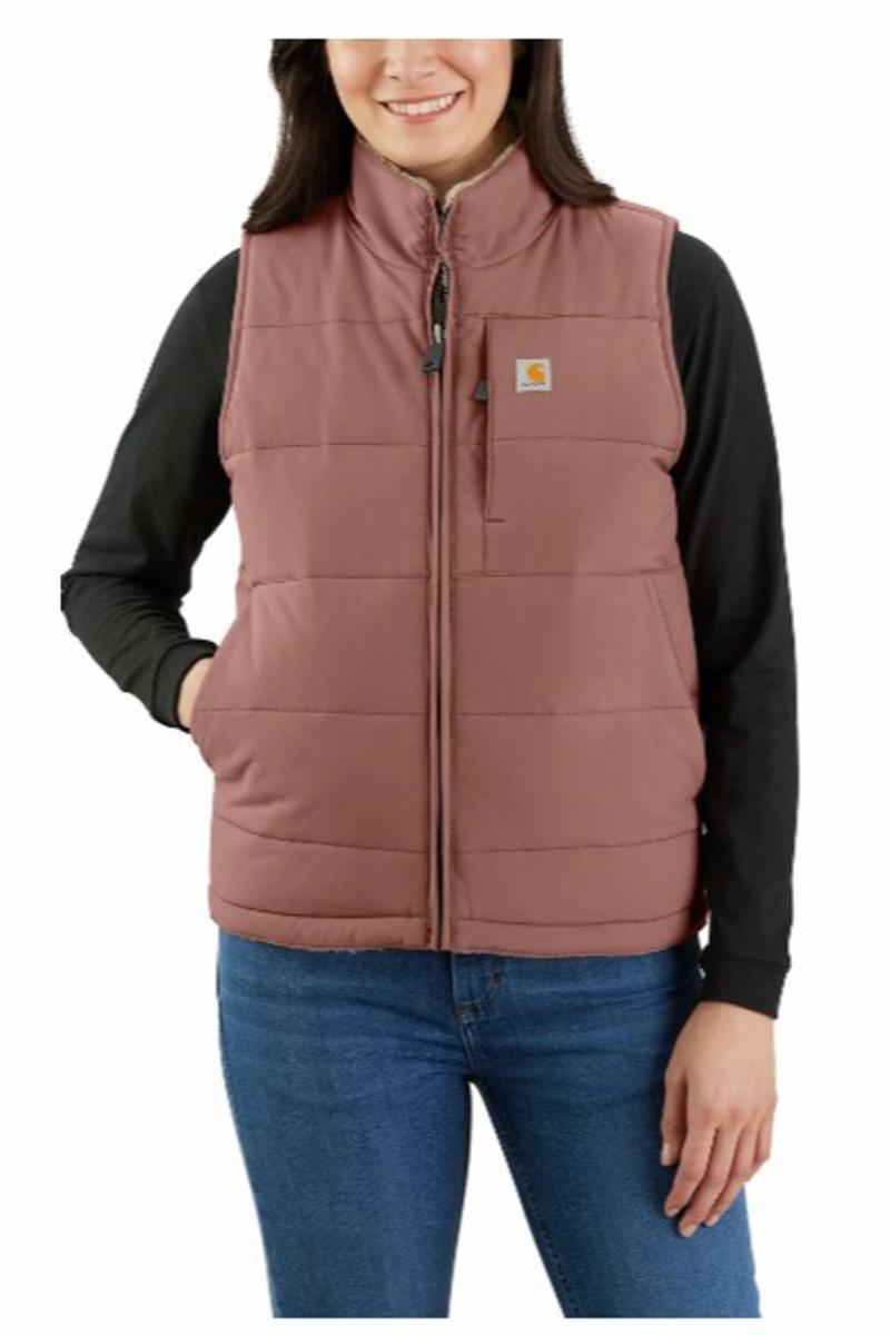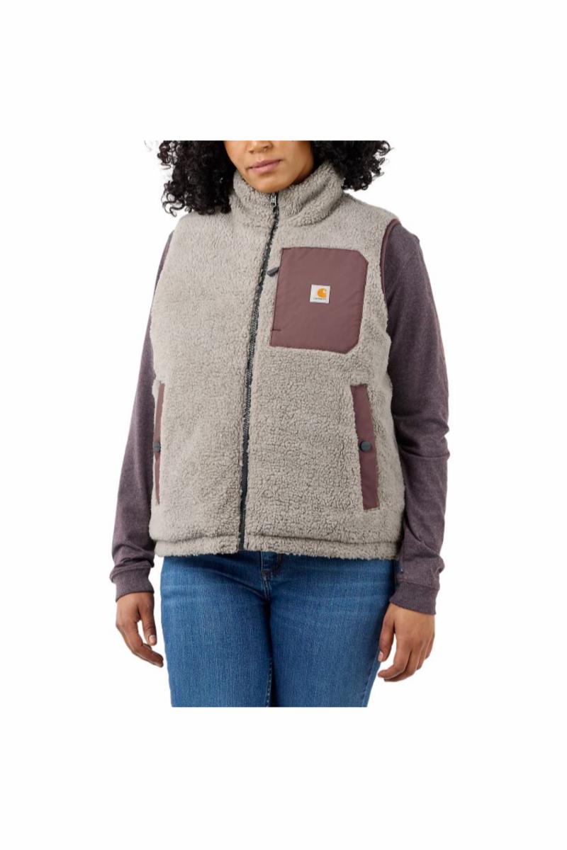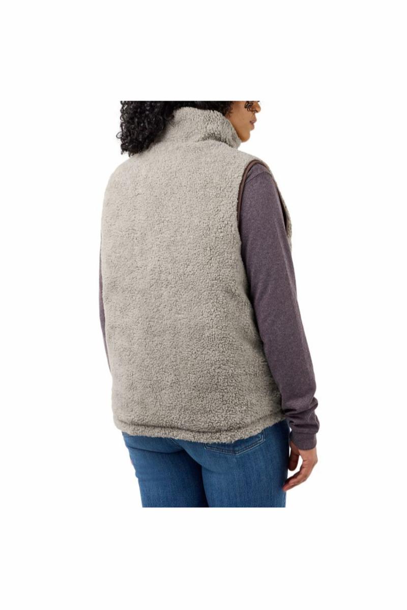 Vendbar vest med vannavstøtende finish og vindfighterteknologi Glidelås inn i denne isolerte damevesten for et ekstra lag når temperaturen synker. Bygget for å vare av slitesterkt nylonstoff, blokkerer den vind og slipper lett regn. Lettvektsisolasjon og sherpa-fleece-fôr holder kjernen din varm. Den er vendbar, slik at du kan ha sherpasiden på utsiden når du vil blande den. Materiale: 153 g/m2 100% nylon 100% Polyester