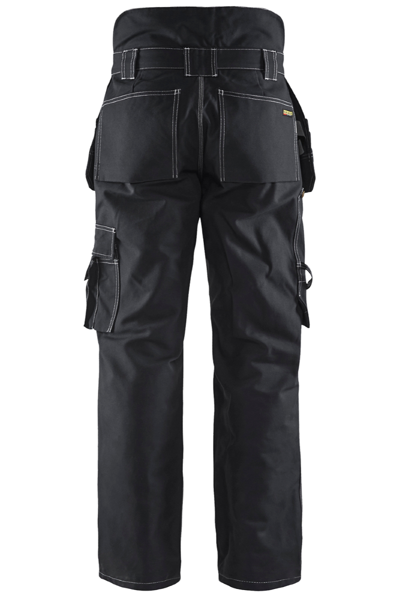 Forsterket tommestokklomme med pennelomme og knivholder.