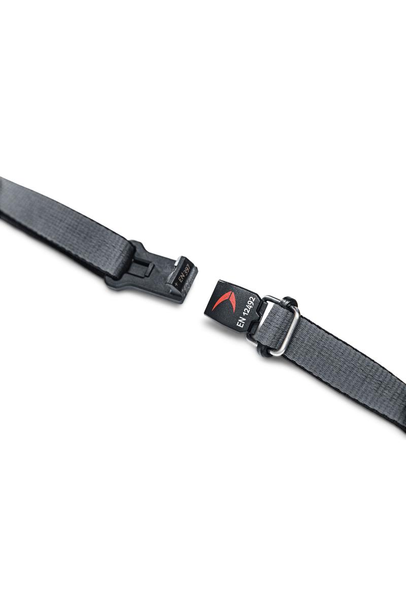 Kan utløses under belastning.Sertifisert i henhold til EN 12492 – klatrehjelm,EN 397 – industriell vernehjelm,EN 1077 – skihjelm klasse B,EN 1078 – sykkelhjelm.