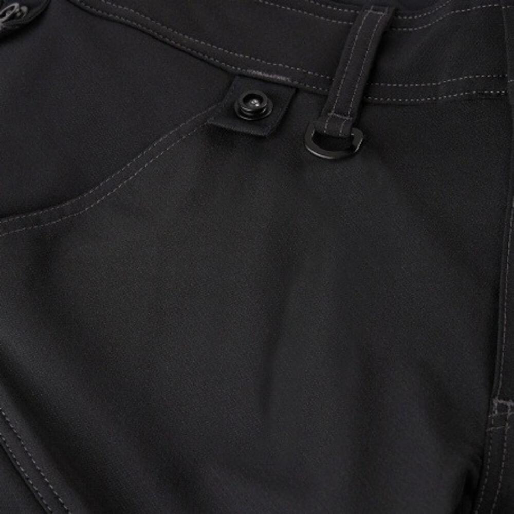 Funksjonelle håndverkerbukser med en moderne passform og mange praktiske detaljer. Optimal passform med bl.a. ergonomisk formet kneparti. Stoffet er laget i en behagelig 4 -veis stretch-kvalitet der slitestyrken og pusteevnen er på topp. Metervaren absorberer svette lett og tørker raskt opp, slik at komforten blir ekstra høy. Knapper for enkel montering av hengelommer. D-ring foran for festing av f.eks. ID-kort. To romslige skrålommer foran. To baklommer. To lårlommer som lukkes med glidelås. På venstre side har lårlommen en ekstra telefonlomme. På høyre side har lårlommen en påsydd tommestokklomme med ekstra inndelinger Kneforsterkning/knelomme med borrelåslukking nedenfor og med to innstillingsmuligheter for høyderegulering av kneputen. Kneforsterkningen er laget i et ekstra slitesterkt kevlarmateriale. Forsterkning nederst bakpå buksebeina for ekstra slitestyrke. Buksene har en ekstra bred oppbrett som er beregnet for å kunne øke lengden på buksene hvis det er behov for ekstra benlengde. En enkelt søm sprettes opp, så får buksen ekstra benlengde - uten å måtte sys på nytt.