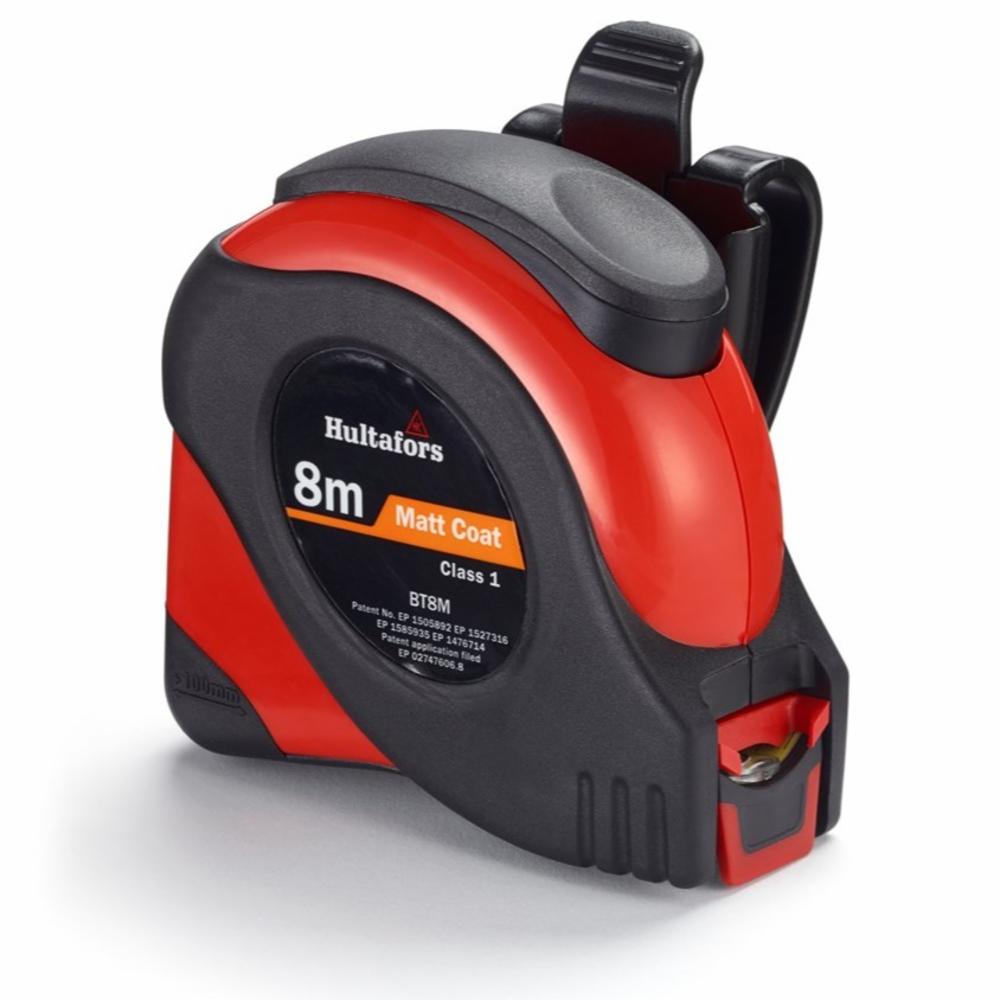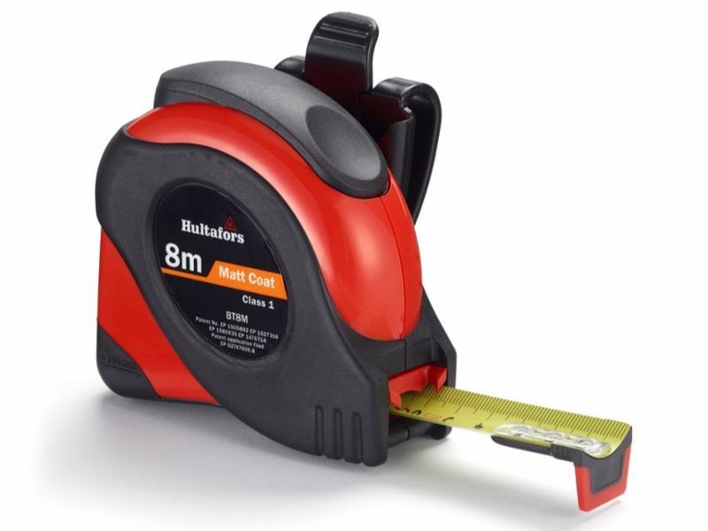 Unik belteholder med rask funksjon som gjør at målebåndet kan frigjøres med en hånd.