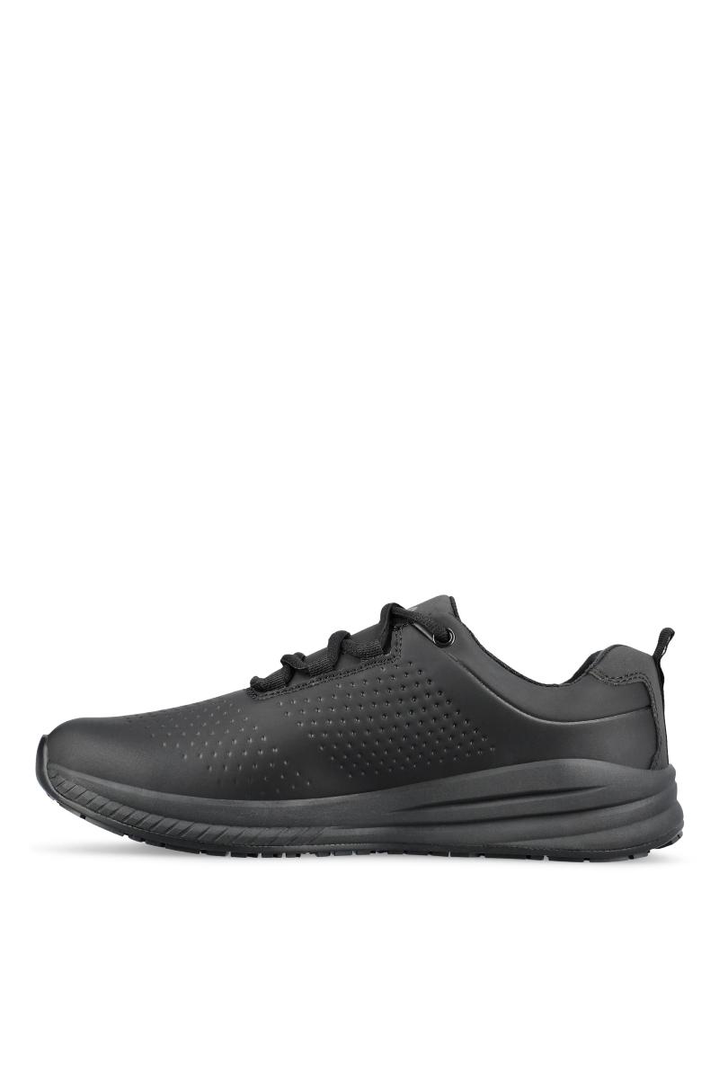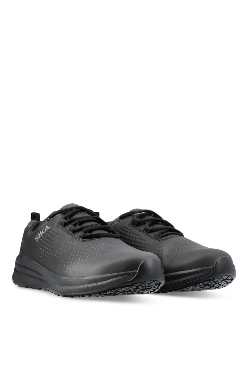 Arbeidssko designet som en joggesko. Lett, slitesterk og komfortabel. Av vannavstøtende og pustende mikrofiber som er enkelt å rengjøre. Med svettetransporterende innerfôr. Ekstra sklihemmende, fleksibel og støtdempende yttersåle som gir godt fotfeste på glatte overflater. Med stabiliserende gelenk som reduserer risikoen for vridningsskader. Innleggssålen er pustende, myk og svettetransporterende. Skoene er PVC-frie og ESD-godkjente. Perfekt som kokkesko.