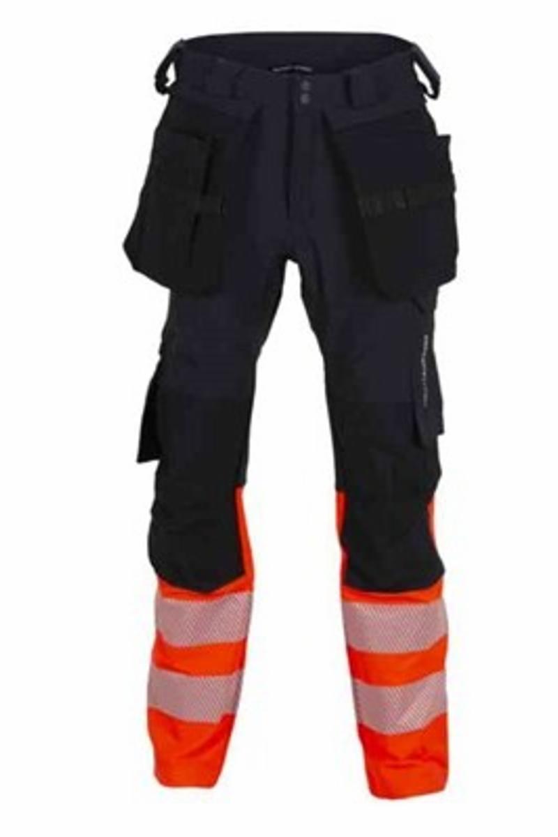 Lårlomme i 4-veis stretch materiale med innvendig mobiltelefonlomme og klaff med borrelås, delvis festet for best mulig bevegelsesfrihet. Kneputelommer i 2-veis stretch PA Cordura® med innputt fra innsiden. 70 mm 3M™ Scotchlite™ segmentert transferrefleks på ben.