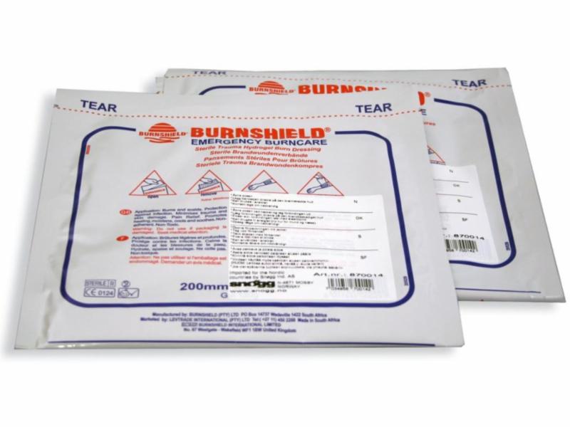 Burnshield brannbandasjer fukter, kjøler og beskytter brannskader helt til sykehuset.