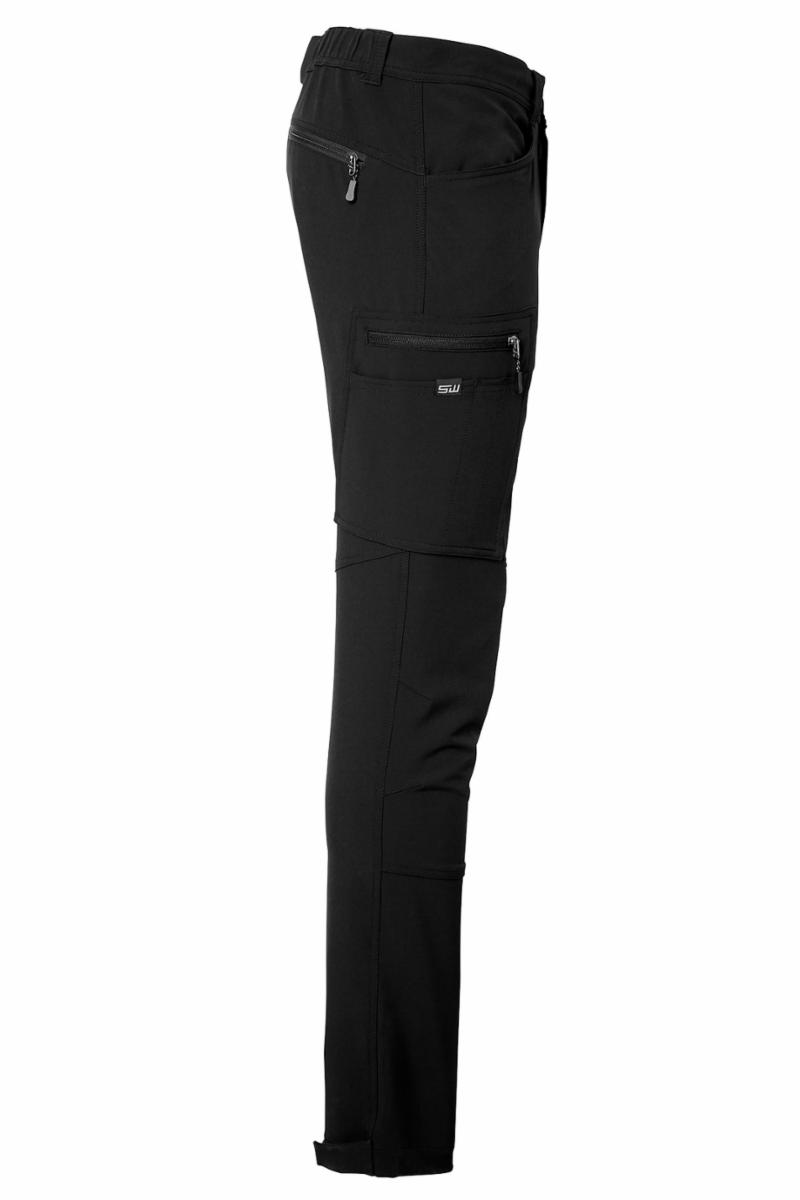 En moderne servicebukse i 92 % resirkulert polyester og 8 % elastan for optimal stretch og komfort. Buksen har mange praktiske lommer, som pennelomme og mobillomme. Benlommer og baklommer har glidelåser utstyrt med glidelåstrekker i refleks. Justerbar benvidde med borrelåsbånd nederst.