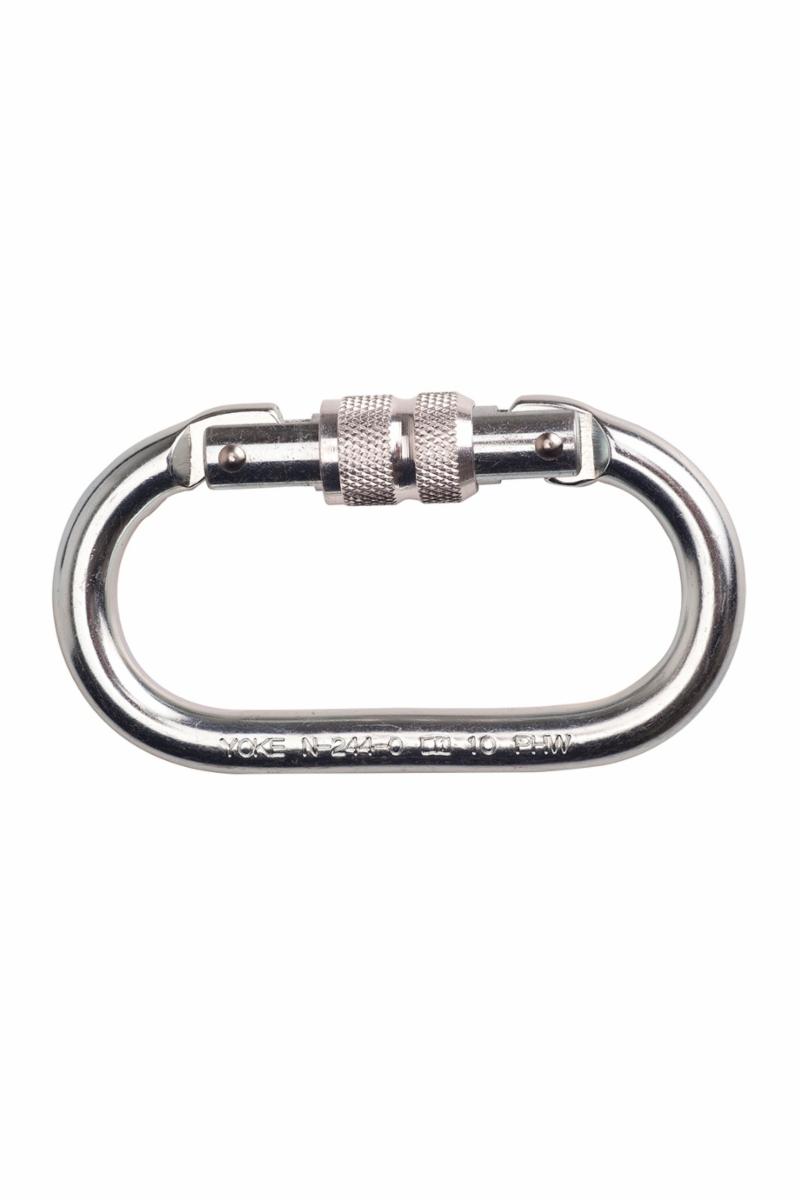 Screwgate karabinkrok Sølv Stål oval karabin med skruelås, lengde: 106mm, åpning: 19mm. Brytebelastning: 25kN. Detaljer CE sertifisert. Standarder EN 362