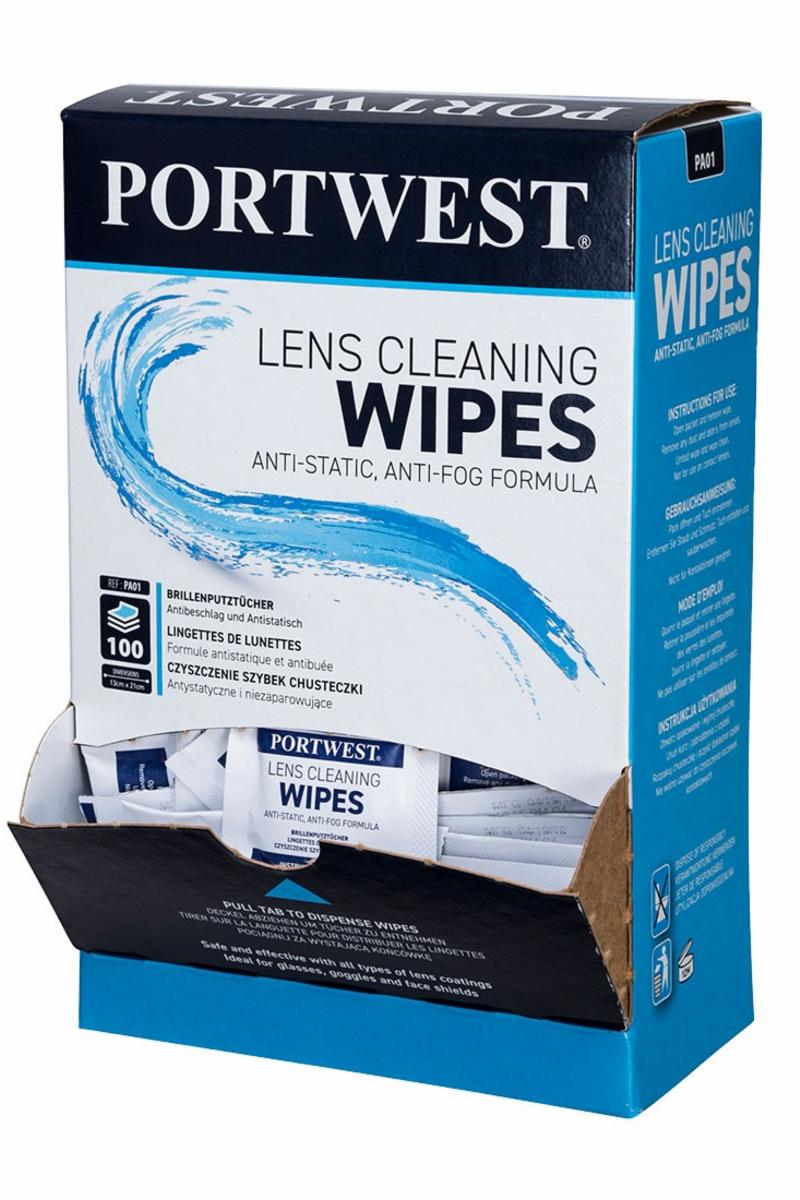 | Vaskeservietter til brille Hvit Vaskeservietter til brille i praktisk dispenser. Praktisk dispenser boks (13x20cm) med 100 individuelt pakket servietter. Detaljer 100 håndklær pr boks Passer til alle vernebriller fra Portwest 100 håndklær pr boks Alkoholfri Anti-statisk Silikonfri - Ideell for produksjon, malingsapplikasjoner, elektronikk og glasshåndtering der silikon er problematisk Hvert håndkle er separat innpakket Lav linting konstruksjon for minimal forurensning Leveres i en praktisk bærbar boks |